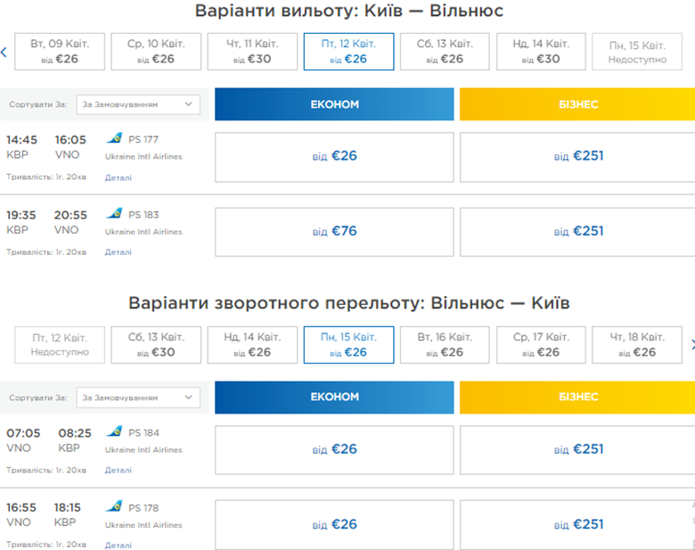 Дати – 12-15 квітня. Вартість квитків у дві сторони – €52.