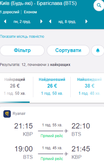 Дати – 2-8 грудня. Вартість квитків у дві сторони – €26.