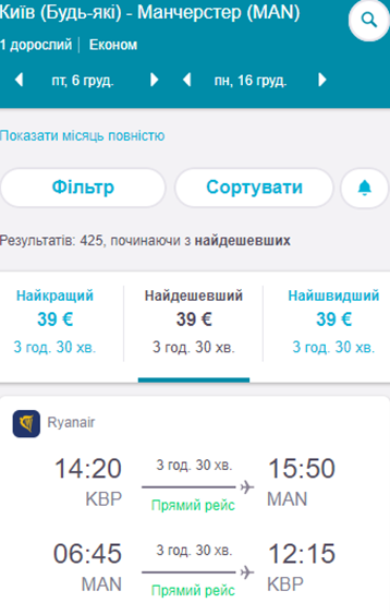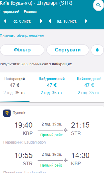 Дати – 6-10 листопада. За квитки у дві сторони доведеться викласти €47.