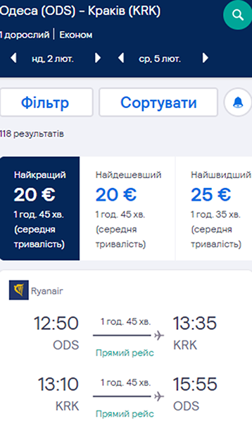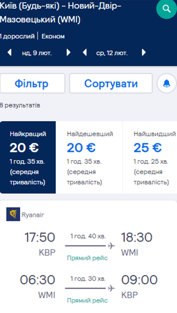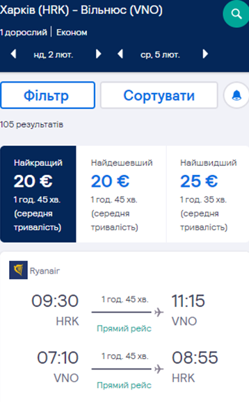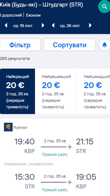 Дати – 19-26 лютого. Вартість квитків туди-назад – €20.