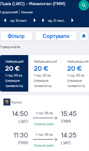 - зі Львова в Варшаву, Краків, Дюссельдорф, Меммінген;