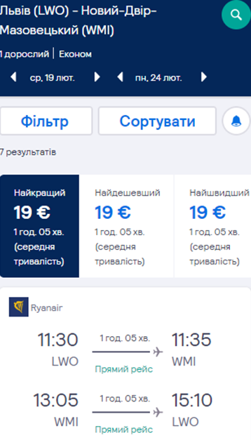 Дати – 19-24 лютого. Вартість квитків у два боки – €19.