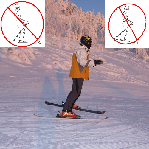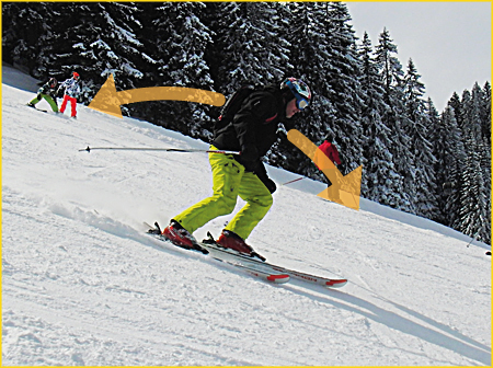Чтобы изобразить это, порепетируйте дома перед зеркалом. Вы и ощутите, и увидите, как удерживаете равновесие, балансируя корпусом. То же самое делайте на горе, в движении, в одну и в другую сторону. И так много раз.