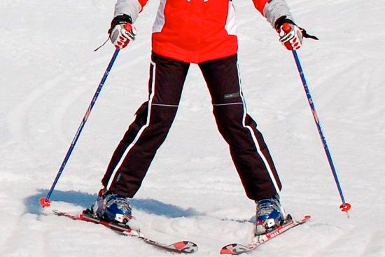 Если поставить лыжу набок и надавить посередине, она прогнется, кант врежется в снег, а сама лыжа поедет по дуге. Спортсмены называют это «закантовка». Вас учили нажимать на ту, что идет по внешней дуге и держать коленки внутрь, буквой А. Но представьте, именно такое положение и препятствует прогрессу. Голени должны быть параллельны. Как и лыжи. И не нужно ни на что давить.