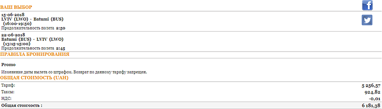 Наприклад, запланувати переліт зі Львова до Батумі можна на дати 15-22 червня. Вартість у два боки – ₴6181,38.