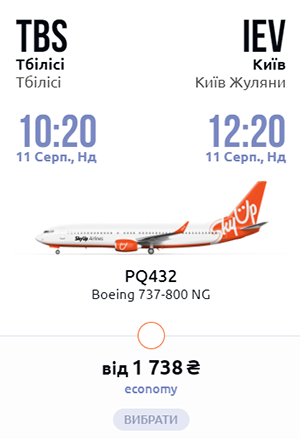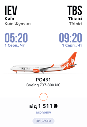 Авиакомпания SkyUp Airlines предлагает прямые перелеты из Украины в Грузию по неплохим ценам, в цену входит провоз ручной клади весом до 7 кг. Выбрать даты для путешествия можно с мая по сентябрь 2019 г.