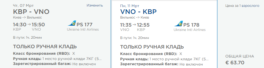 Київ – Вільнюс, 7-11 березня – 64 євро