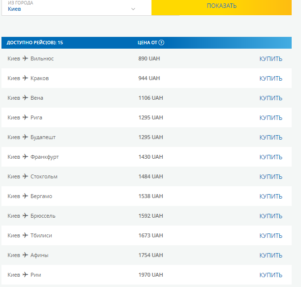 Ціни від – 64 євро в дві сторони. Приклади на вибір: