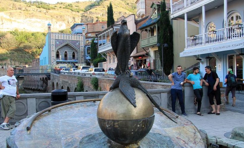 История Тбилиси и серных бань связана с царем Вахтангом Горгасали. Однажды во время охоты на фазана он выпустил за ним своего верного сокола, который схватил добычу и с ней скрылся в лесу. Царь отправился на поиски сокола и нашел его рядом с теплым источником. Дальше эта история имеет два продолжения. Согласно первой фазана съели, а вторая говорит о том, что фазан попал в воду, исцелился от ран и улетел. Но конец у легенды один: царю так понравилось это место, что он приказал построить бани и перенести столицу из Мцхеты в основанный им город Тбилиси. Об этой легенде напоминает памятник королевскому соколу, держащему в своих когтях фазана.