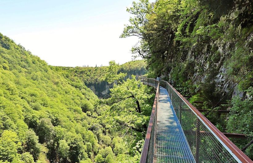 Каньон Окаце входит в число самых популярных природных достопримечательностей Грузии. Вдоль каньона можно идти по подвесному мосту высотой 140 м.