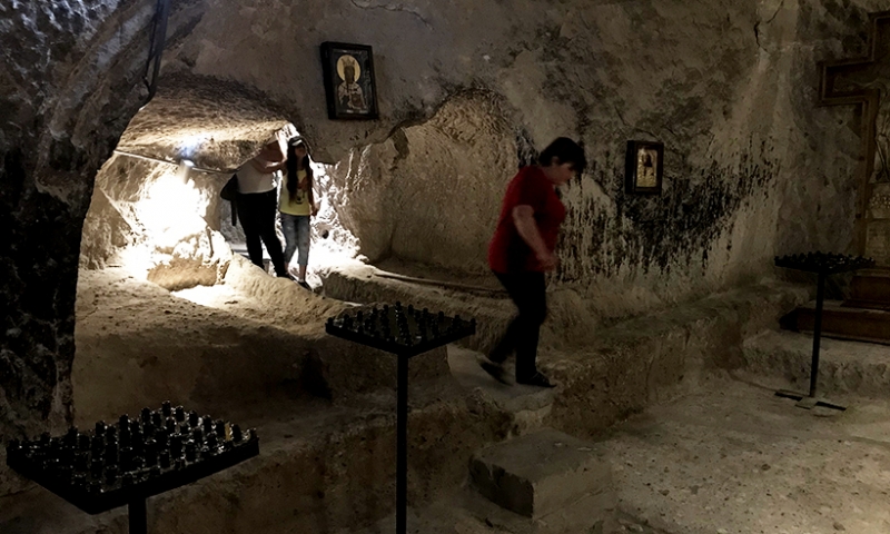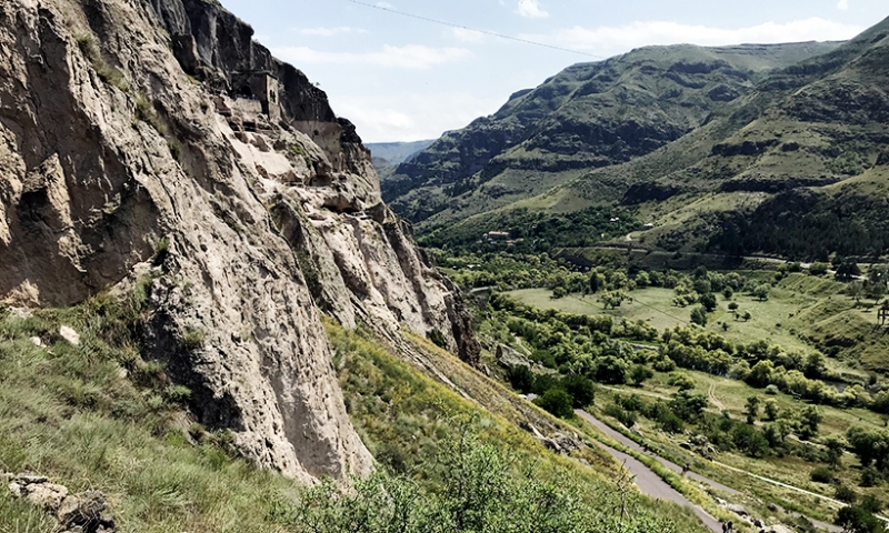 Вардзия – пещерный монастырь 12-го века. Расположен еще западнее Уплисцхе, на отвесной скале. Когда нападали враги, здесь могли укрыться около 40 тыс человек. Действовала канализация из керамических труб. И водопровод. Прекратил существование монастырь в 16 веке. После этого тут жили турки-пастухи, до начала 19 века. Пока в ходе Русско-турецкой войны, имперские войска не освободили эту территорию. Рядом есть женский монастырь – настоящая обитель духовности и умиротворения, со старинным храмом. Обычно храм закрыт, но монахини откроют его по вашей просьбе. Они очень радушны и гостеприимны.