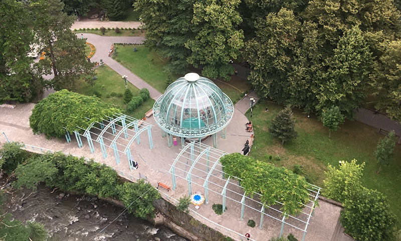В парке Боржоми находятся два источника: холодный и теплый. Можно подняться на канатке, увидеть Боржоми с высоты и потом спуститься вниз по благоустроенной тропе парка. Для завершения оздоровительного ритуала обязательно сходить к термальным купальням на открытом воздухе. Это примерно 40 минут ходьбы по парку.