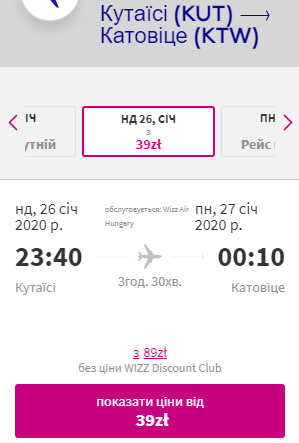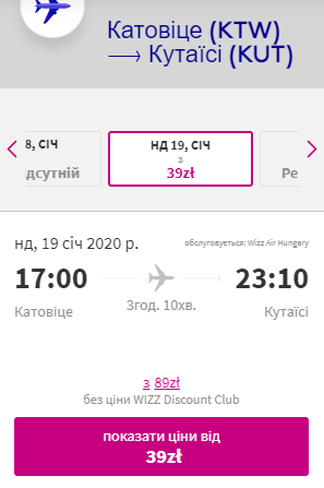 Дати подорожі: 19-27 січня. Вартість усіх квитків у два боки— €38 для учасників wizz-клубу та €62 для всіх інших.