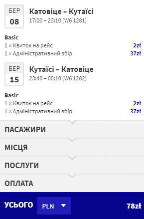 Вартість усіх квитків у два боки — €38 для учасників wizz-клубу та €62 для всіх.