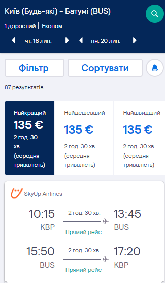 Дати: 16-20 липня. Ціна квитків у два боки – €135 з особи.