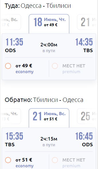 Одеса – Тбілісі, 18-21 червня. Вартість квитків у два боки — €100