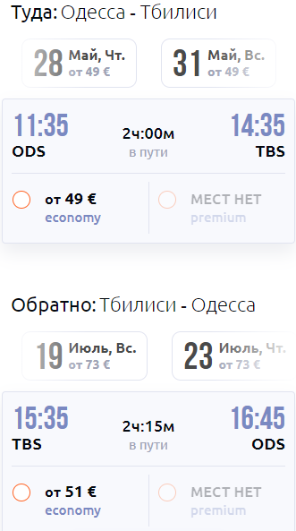 Одеса – Тбілісі, 19-26 липня. Вартість квитків у два боки — €100