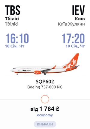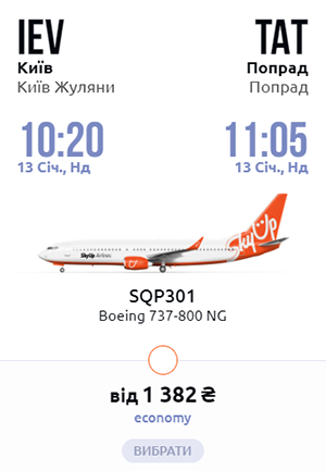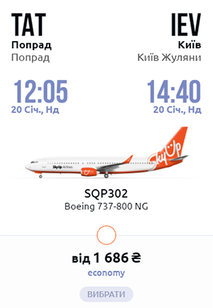 SkyUp – бюджетна українська авікомпанія пропонує низькі ціни в січні на перельоти з Києва в Попрад та Тбілісі.