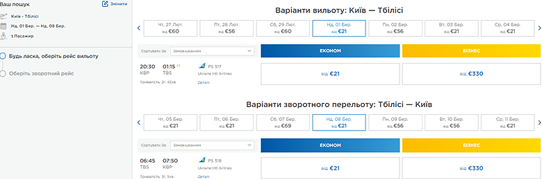 Дати – 1-8 березня 2020 р. Ціна квитків у дві сторони становить €42.