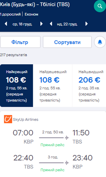 Дати – 18-22 грудня. Вартість квитків у два боки – €108.