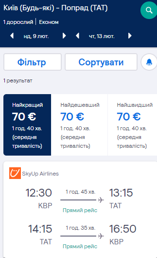 Київ — Попрад, 9-13 лютого — €70