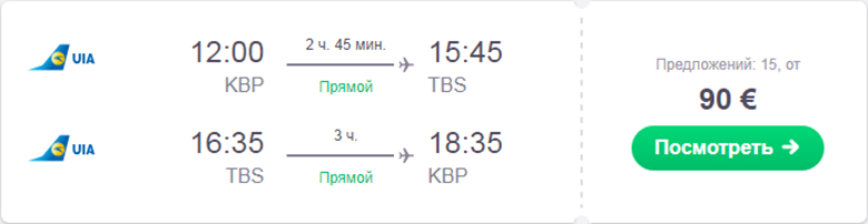 Киев – Тбилиси, 8-15 мая – €90 евро в обе стороны.