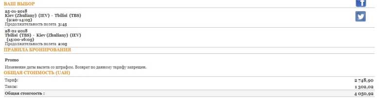 Для примера – билет из Киева в Тбилиси с 25 до 28 января 2018 года – $150.