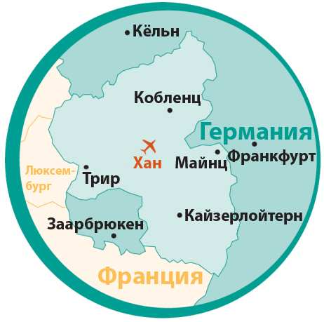 Міжнародний аеропорт Франкфурт-Хан (Frankfurt-Hahn) розташований на відстані 120 км від Франкфурта-на-Майні, на заході Німеччини. На такій же відстані він знаходиться від міста Люксембург. Найближче велике місто – Кобленц (72 км).