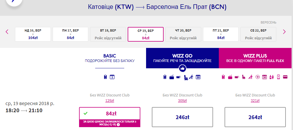 Катовіце – Барселона 19 вересня – 19 євро для учасників Wizz Club