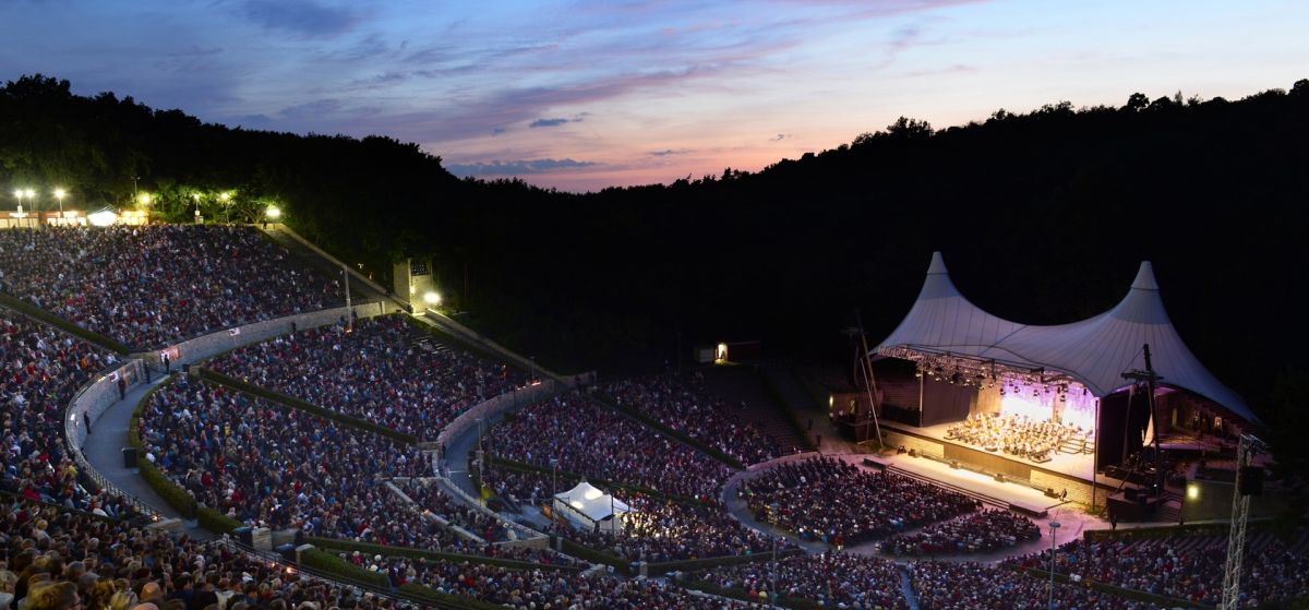 Музыка на свежем воздухе в хорошую погоду. Концерты классики, шоу с мировыми звездами. Имя переводится как «лесная сцена». Вокруг – лес и горный склон. Архитектурой напоминает древнегреческие амфитеатры. Строился для Олимпийских игр 1936 г.