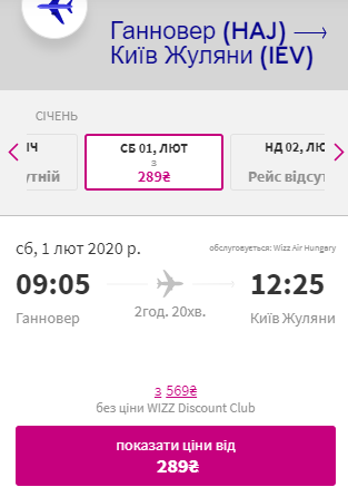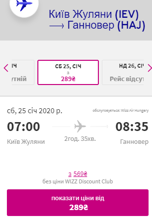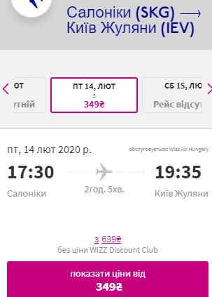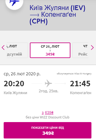 Дати: 25 січня-1 лютого. Вартість квитків у два боки — €21 для учасників wizz-клубу та €41 для всіх інших