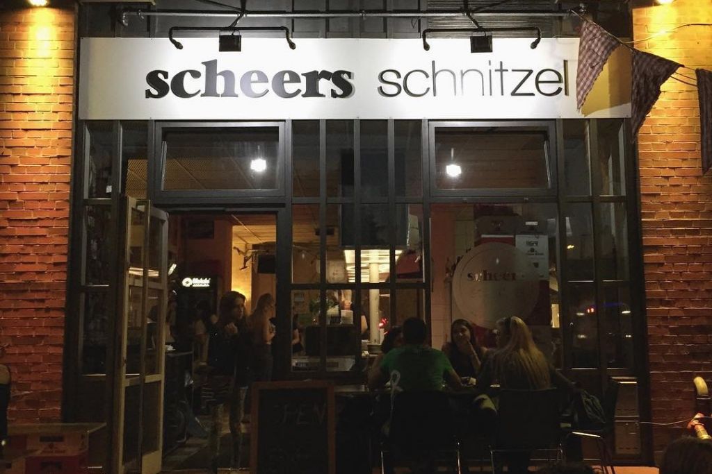 Закусочная Scheers Schnitzel находится недалеко от двухуровневого моста Обербаумбрюкке. Это место не отличается оригинальным интерьером, скорее, он очень лаконичный, но народу всего много. А все потому, что здесь хороший выбор напитков и блюд. Тут вас накормят шницелем из местного высококачественного мяса, свежим картофелем фри и предложат вкусные соусы: карри, андалузский, чили, айоли, клюквенный и барбекю, приготовленные из местных продуктов.