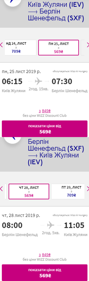 Дати – 25-28 листопада. Вартість квитків в обидві сторони – €41 для учасників wizz-клубу та €61 для всіх інших.