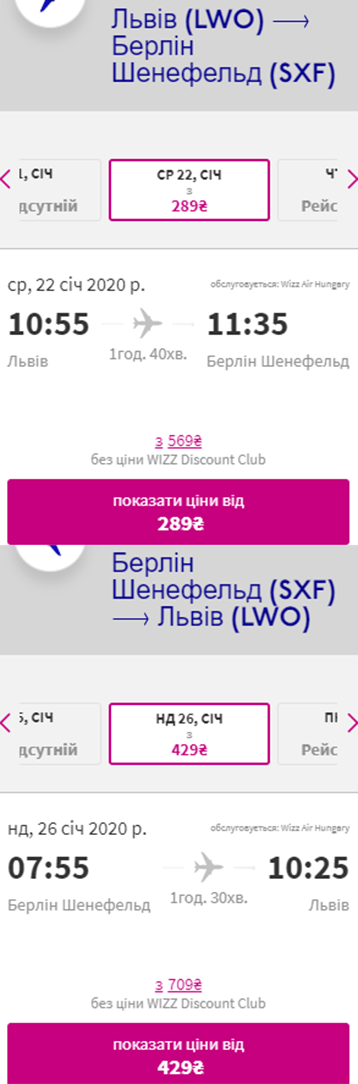 Дати – 22-26 січня. Ціна квитків туди-назад – €26 для учасників wizz-клубу та €46 для всіх інших.