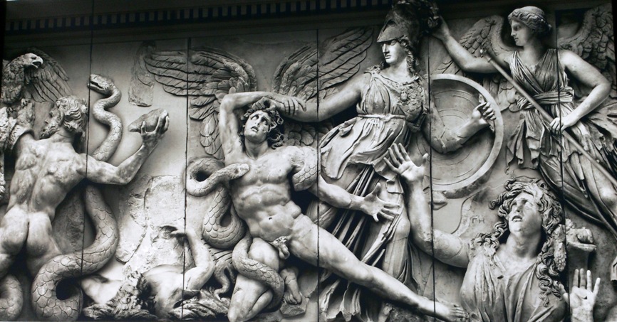 Пергамський вівтар. Візитна картка Пергамського музею. Датується ІІ. до н. е. На скульптурному фризі зображено драматичну битву богів із гігантами. Твір мистецтва періоду еллінізму, одна з найзначніших пам’яток того часу, що збереглися до наших днів. Отримав назву за місцем свого створення – місто Пергам в Малій Азії.