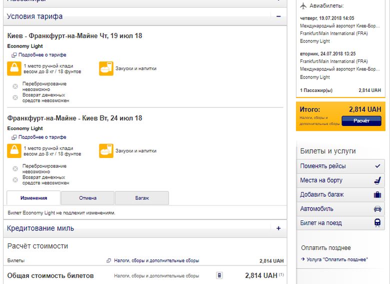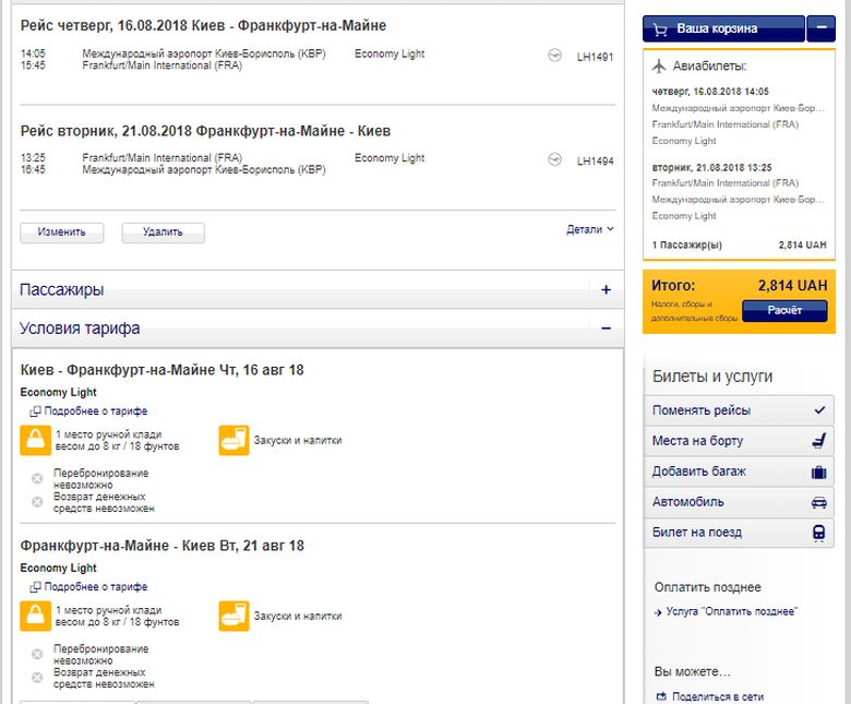 Lufthansa снизила цены на рейс Киев – Франкфурт-на-Майне. В тариф Light входит ручная кладь 8 кг и личные вещи. Также напитки и питание. Акционные цены доступны на рейсы, которые будут выполняться в июле, августе, сентябре, октябре, ноябре, декабре, а также на рейсы 2019 года.