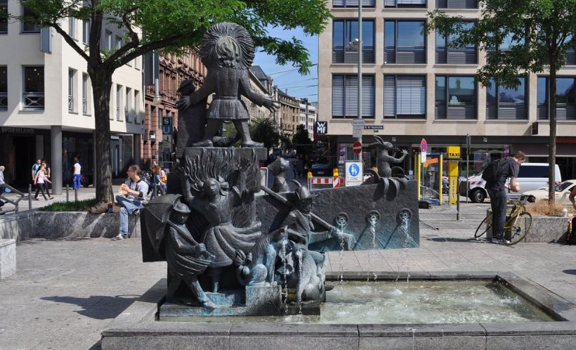 Оригинальная фонтанная композиция создана по мотивам стихотворений немецкого поэта, писателя 19 ст. Генриха Хофмана. Наибольшую известность получил его сборник назидательных стихов «Struwwelpeter» о детях, которые плохо себя ведут и поэтому попадают в неприятные ситуации. Литературные персонажи изображены в бронзе. Фонтан украсил площадь в 1985 г.