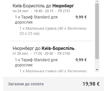 Київ — Нюрнберг, 24-28 лютого — €20 у два боки.