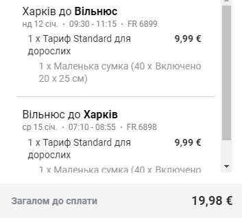 Харків — Вільнюс, 12-15 січня — €20 у два боки.