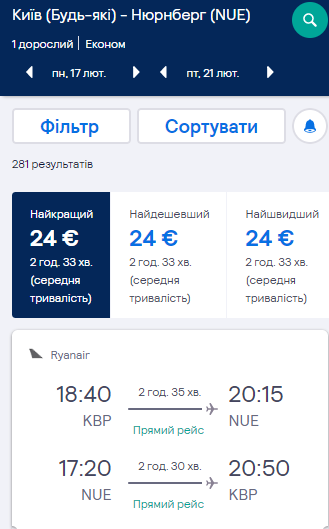 Дати: 17-21 лютого. Вартість квитків — €24 у дві сторони.