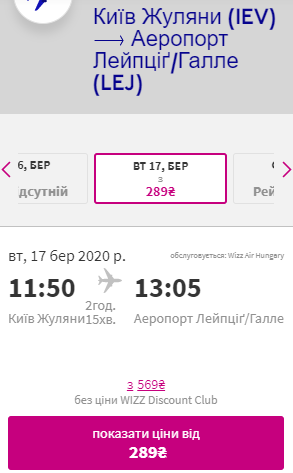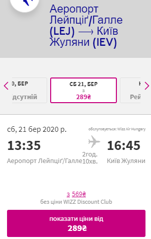 Дати: 17-21 березня. Вартість квитків у два боки — €22 для учасників wizz-клубу та €43 для всіх інших.
