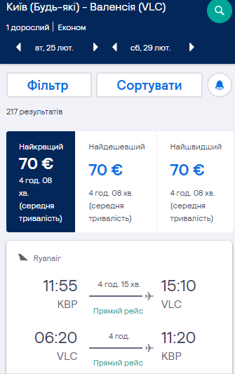 Дати: 12- 19 лютого. Ціна квитків у два боки — €34