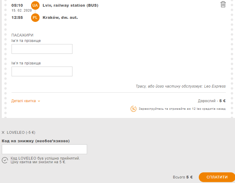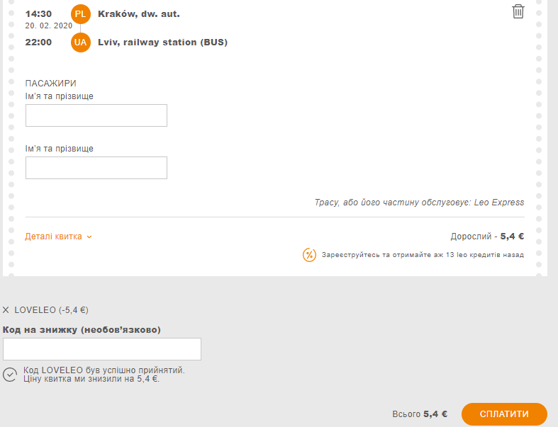 Акція діє на всіх залізничних, автобусних та мікроавтобусних сполученнях Leo Express.
