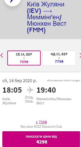 Ціна квитків у два боки — €41 для учасників wizz-клубу та €61 для всіх інших.