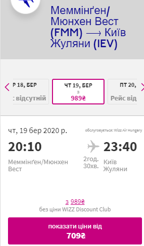 Дати: 14-19 березня. Авіакомпанія – Wizz Air.