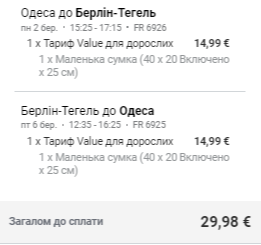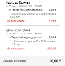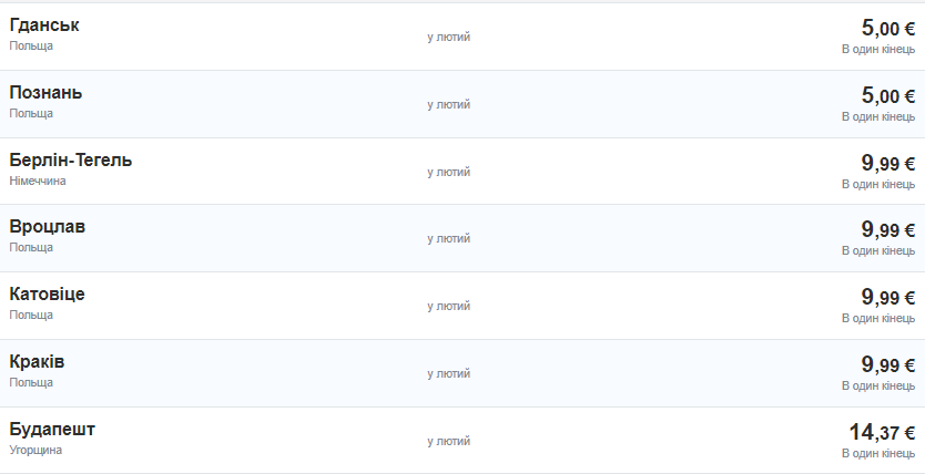 Дати: 25-29 лютого. Ціна у два боки — €10