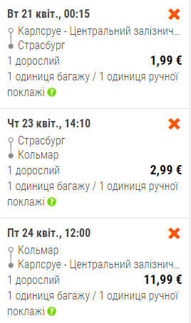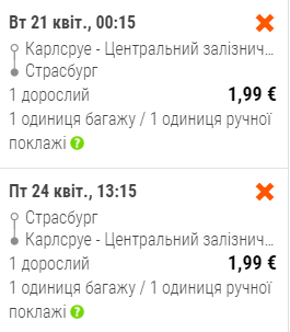 З Карлсруе спочатку доїхати автобусом FlixBus до Страсбурга 21 квітня.