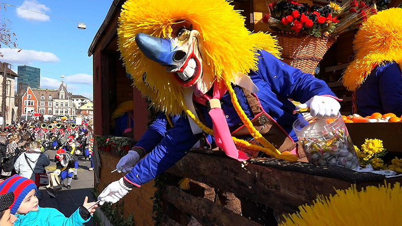 Парад сопровождают фургоны, груженные сладостями, цветами, апельсинами и т.д. Участники в костюмах эльзасских крестьян с фургонов бросают угощение в толпу восторженных зрителей. В эти дни проводятся много детских праздников, на улицах малышей развлекают клоуны.