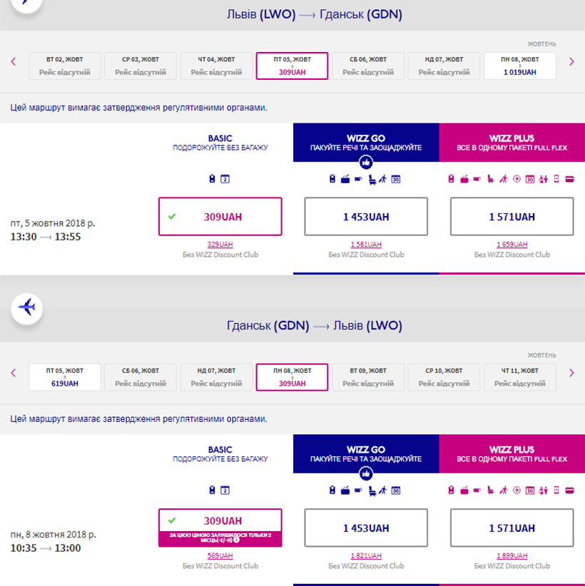 Путешествие можно запланировать, например, на 5-8 октября. Участники Wizz Discount Club заплатят за перелет в обе стороны 618 грн или €19, а все остальные – 898 грн или €28.