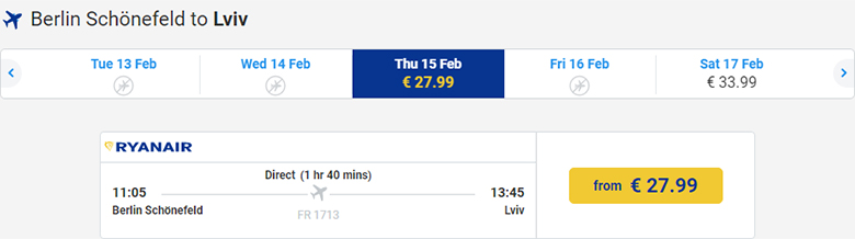 Повернутися до Львова з Берліну радимо 15 лютого за €28.